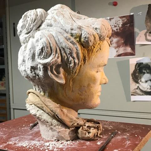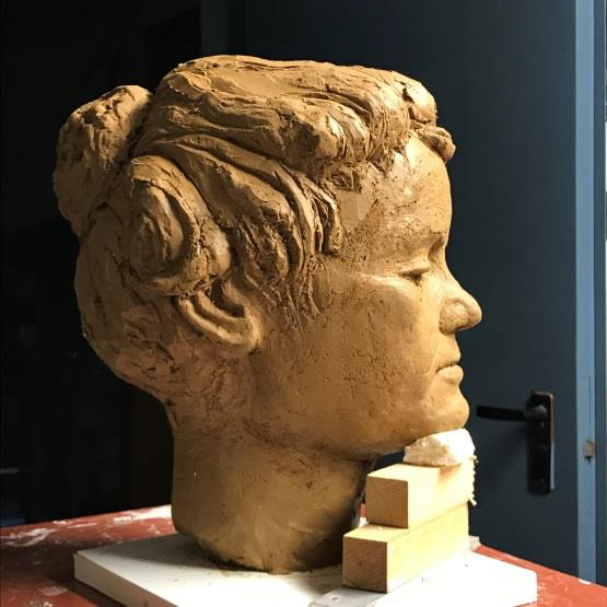 Dann modellierte ich den Kopf in Ton. Mit diesem Material kann ich schneller arbeiten, in der additiven Methode ist ein schnelles Hinzufügen möglich.