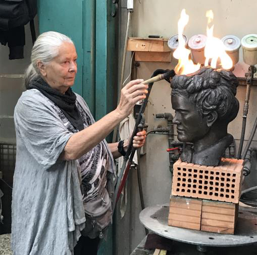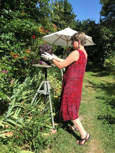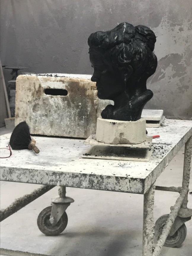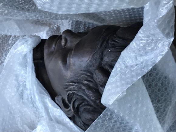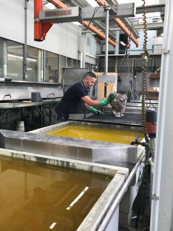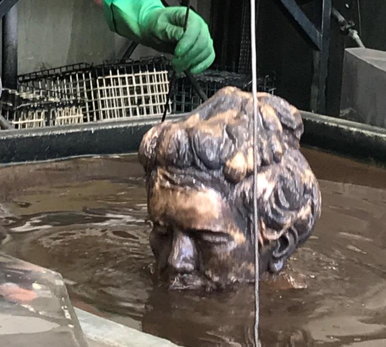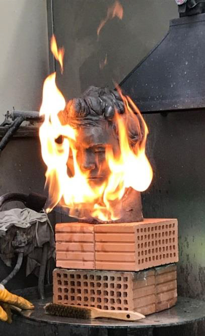Nach dem Guss im Wachausschmelzverfahren wurde der Kopf am 16. Juli patiniert.