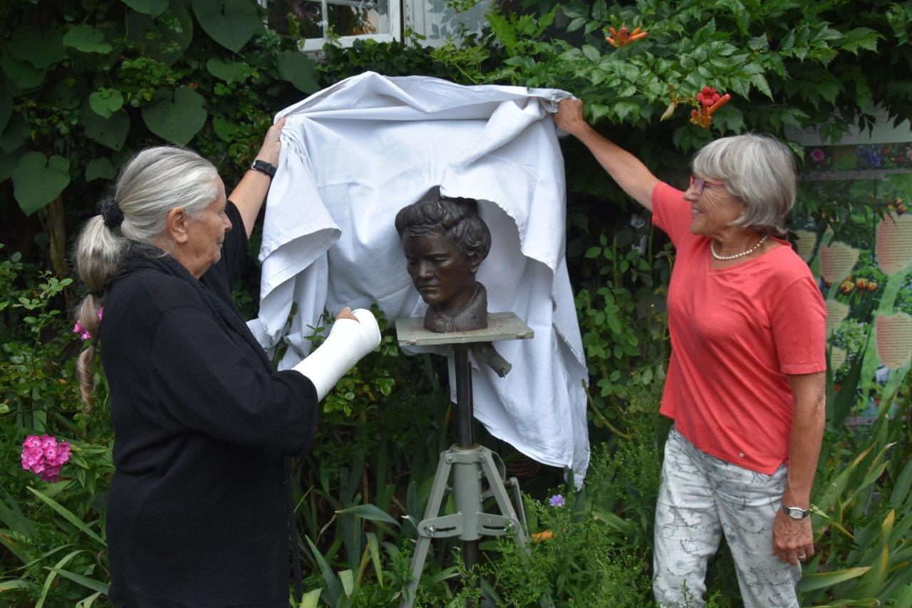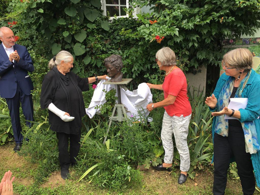 Anlässlich der Feier zur Umwidmung des Hermann-Hesse-Hauses in Mia- und Hermann-Hesse-Haus Gaienhofen in Anwesenheit der Enkel und Nachfahren der Familie und den Mitgliedern des Fördervereins und des Arbeitskreises Mia Hesse wurde der Kopf der Mia enthüllt.