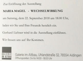 "WECHSELWIRKUNG" Aldingen, Galerie im Altbau, 22.09.2018